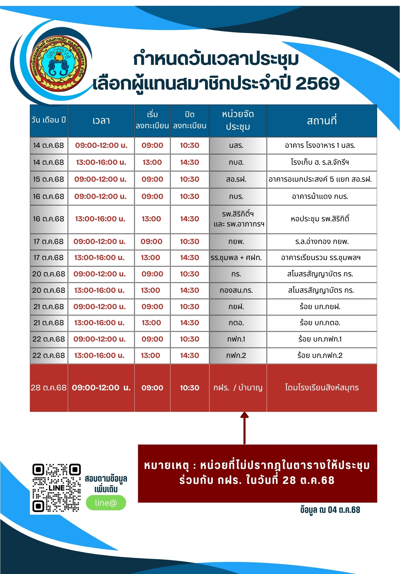 ตารางกำหนดวันประชุมเลือกผู้แทนสมาชิก ประจำปี2569