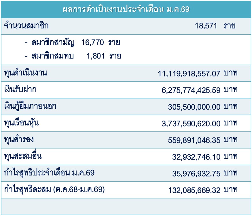 งบดุล ณ เดือน ม.ค.69